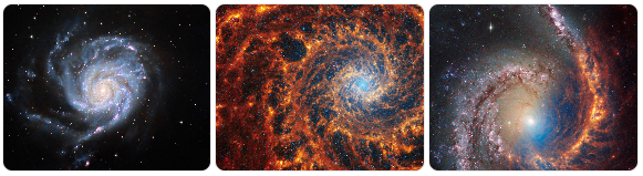 One of the best examples of a spiral galaxy is Messier 101, which represents a classic spiral structure with clear and symmetric arms. Similarly, NGC 628 is another typical spiral galaxy that does not show a bar structure, and because it is seen face-on, its spiral arms can be observed clearly. NGC 1566 also displays characteristic traits of this class with distinct arms and active star-forming regions.