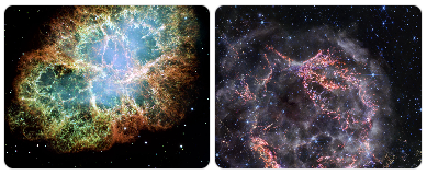 After the explosion, the gas ejected into space continues to expand outward at speeds reaching thousands of kilometers per second. This expanding shell of gas forms the supernova remnant. Over time, the structure interacts with the interstellar medium and takes on complex, irregular shapes. The Crab Nebula is one of the best-known examples of such an expanding supernova remnant, and traces of energetic processes left behind by the explosion can still be observed within it. Shock waves compress surrounding gas and can trigger the onset of new physical processes.