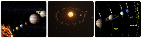 The Sun, located at the center of the Solar System, contains nearly all of the system’s total mass. For this reason, the motions of planets, moons, and smaller bodies are governed by the Sun’s gravitational pull. The planets orbit the Sun along specific paths, and most of these orbits lie within the same plane. This shared plane clearly indicates that the system originated from a rotating disk of gas and dust.